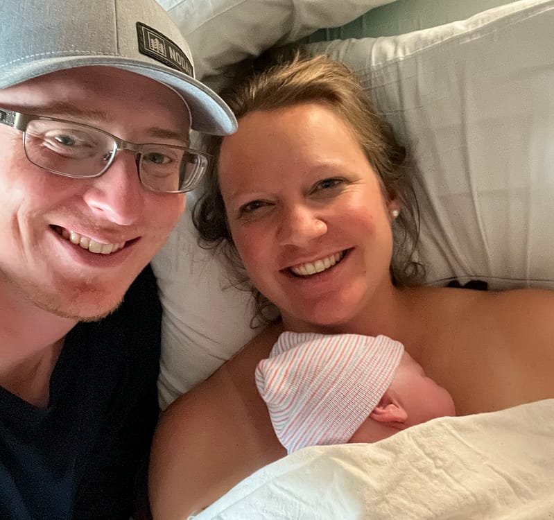 Eve erzählt zwei Geschichten über eine schnelle und medikamentenfreie Krankenhausgeburt. Ihre erste Geburt begann mit einem Blasensprung und sofortigen schnellen Wehen. Sie arbeitete in einer Wanne und konzentrierte sich auf Geburtsbestätigungen. Kontaktieren Sie Eve auf Instagram, wenn Sie eine Kopie dieser Affirmationen wünschen. Diese Geburt dauerte fünf Stunden vom Wasserbruch bis zur Entbindung, und ihre Tochter Ada wurde geboren. Ihre zweite Geburt erfolgte 18 Monate nach der ersten und verlief völlig anders. Da sie in der 14. Woche Herzrhythmusstörungen feststellte, wurde ein neues Pflegeteam eingesetzt. Sie wechselte von der Hebamme zur Geburtshilfe und MFM-Betreuung und wurde schließlich wegen Bluthochdruck eingeleitet. Die Einleitung war einschüchternd, führte aber zu einer weiteren schnellen Entbindung ihres Sohnes Harvey ohne Medikamente